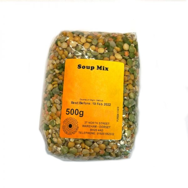Ingredients: Green Split Peas, Yellow Split Peas, Pearl Barley, Red Split Lentals and Marrowfat Peas.